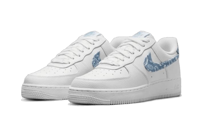 AF1 07 ESSENTIALS WHITE WORN BLUE PAISLEy